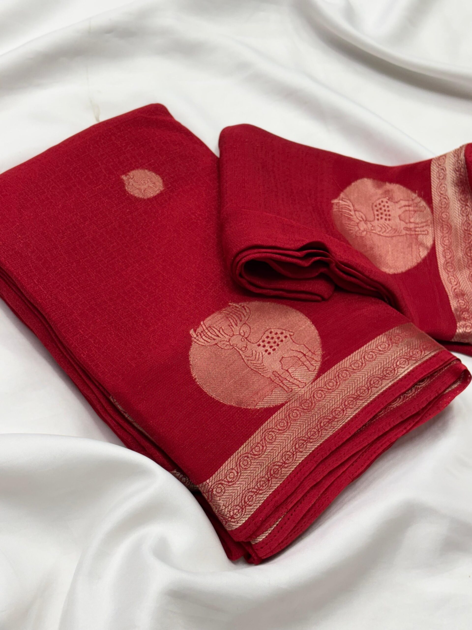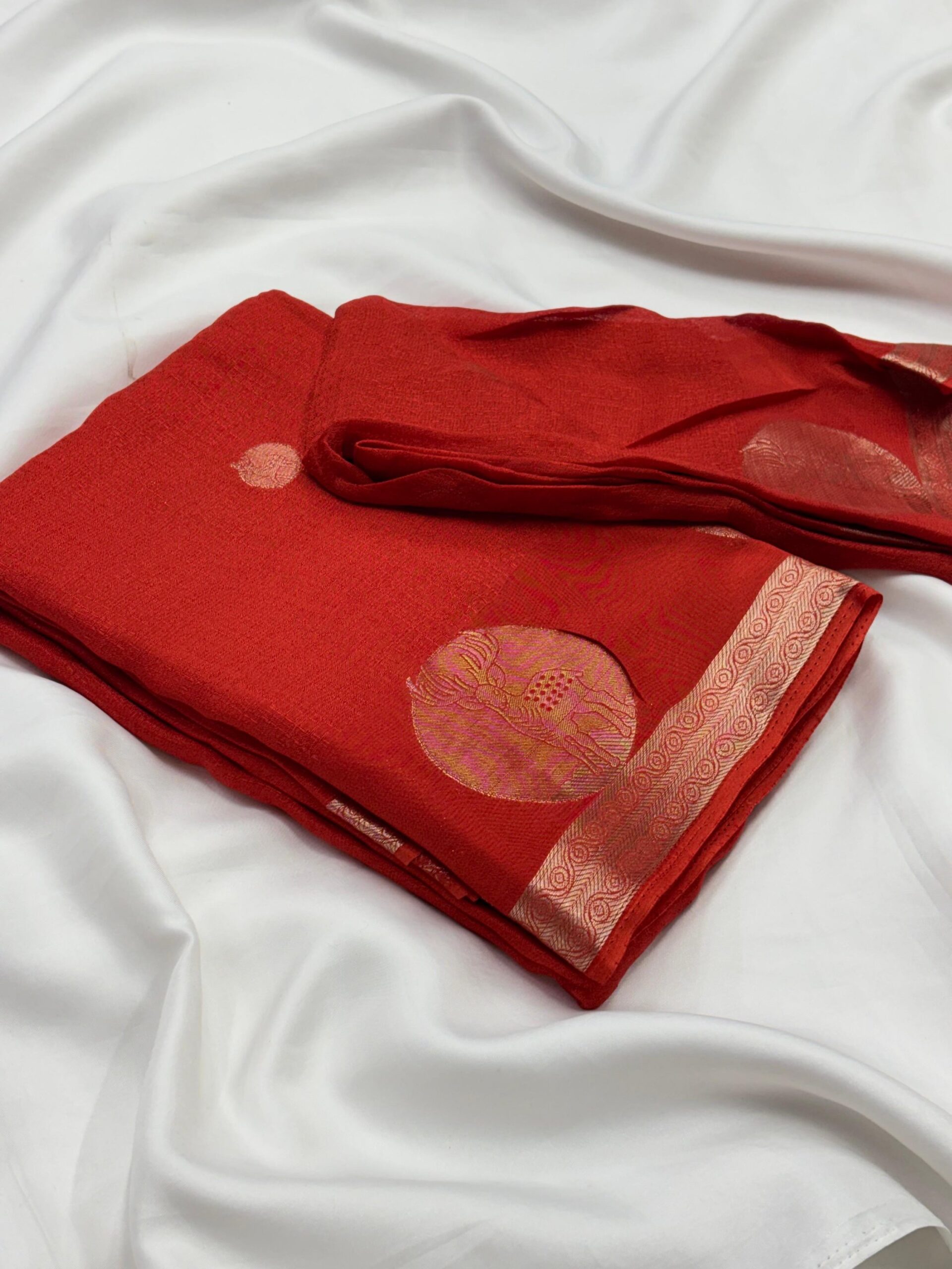 Discover the charm of tradition with our Jute Matka Silk Sarees, crafted for women who love elegance with a natural touch. Made from premium jute matka silk, these sarees offer a rich texture, graceful drape, and breathable comfort.