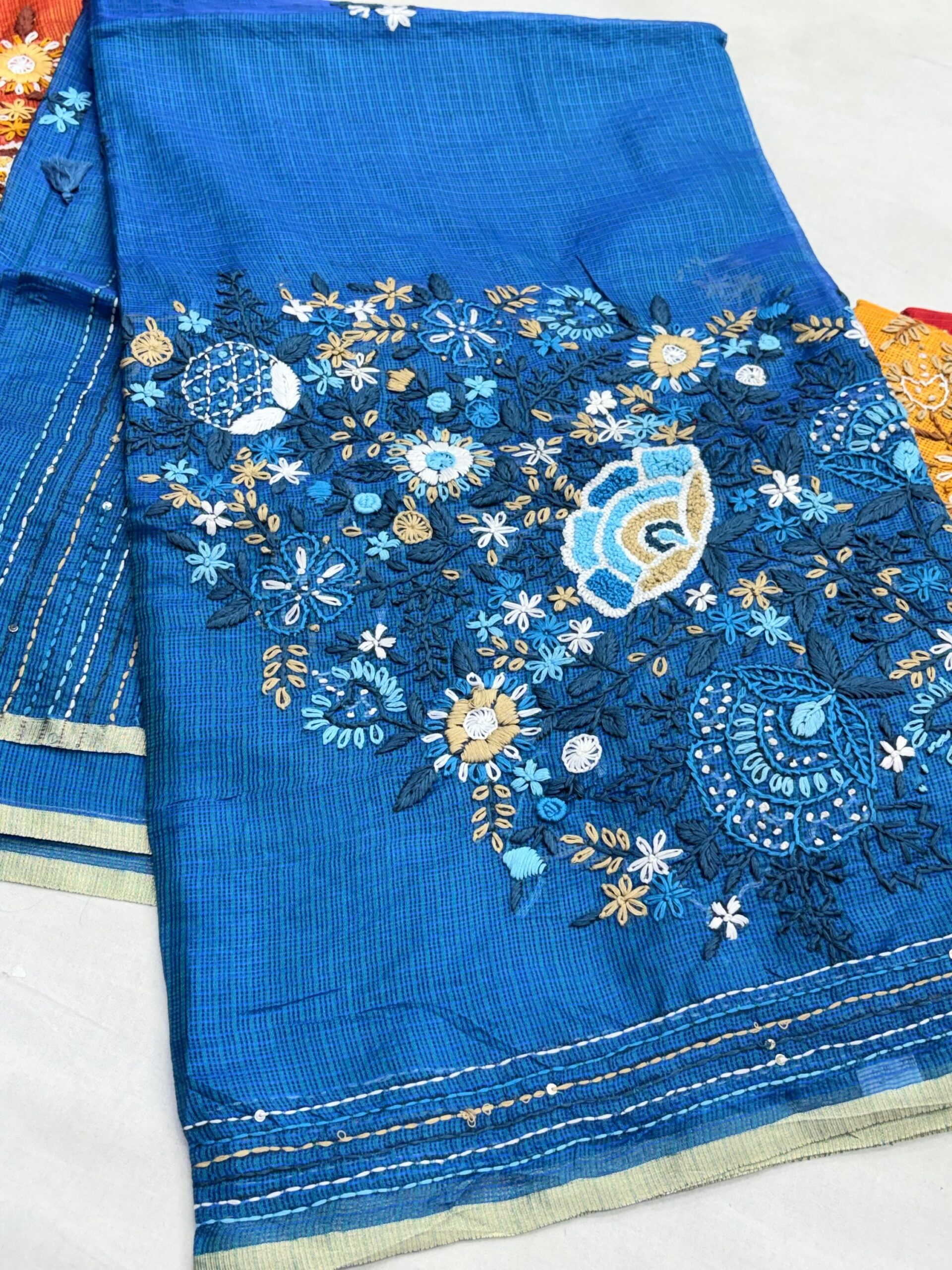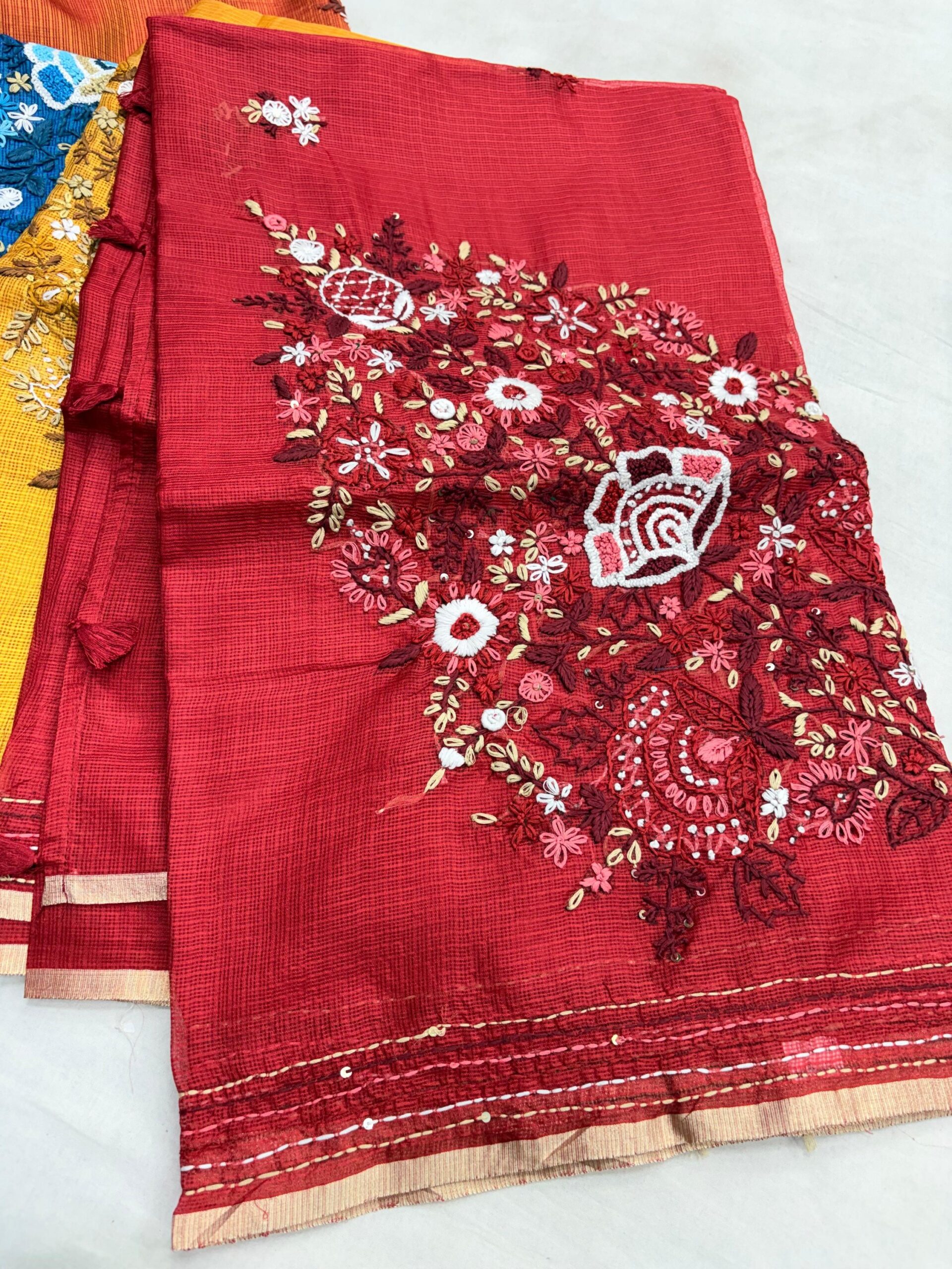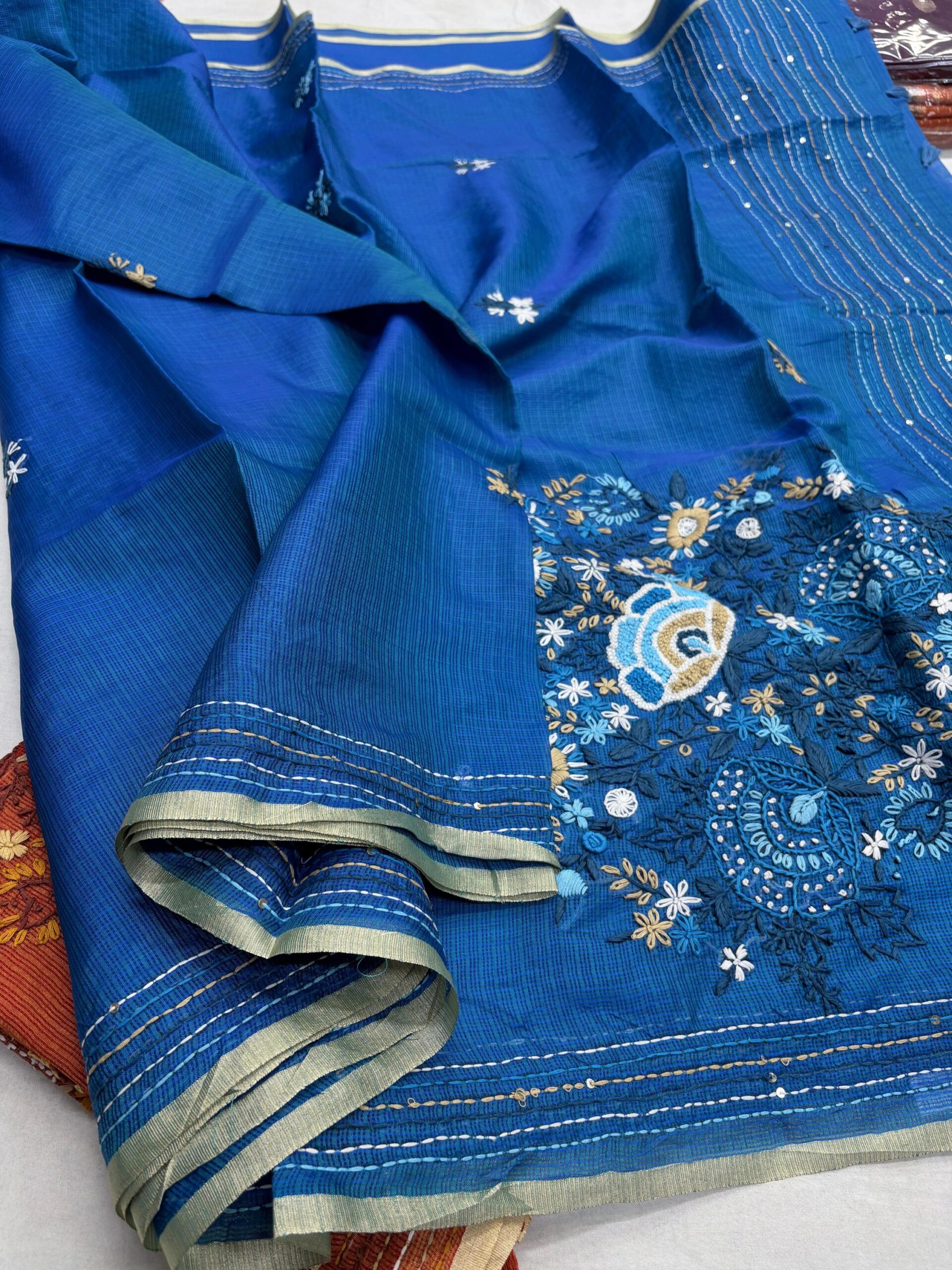 • Beautiful Kantha embroidery with intricate floral thread work