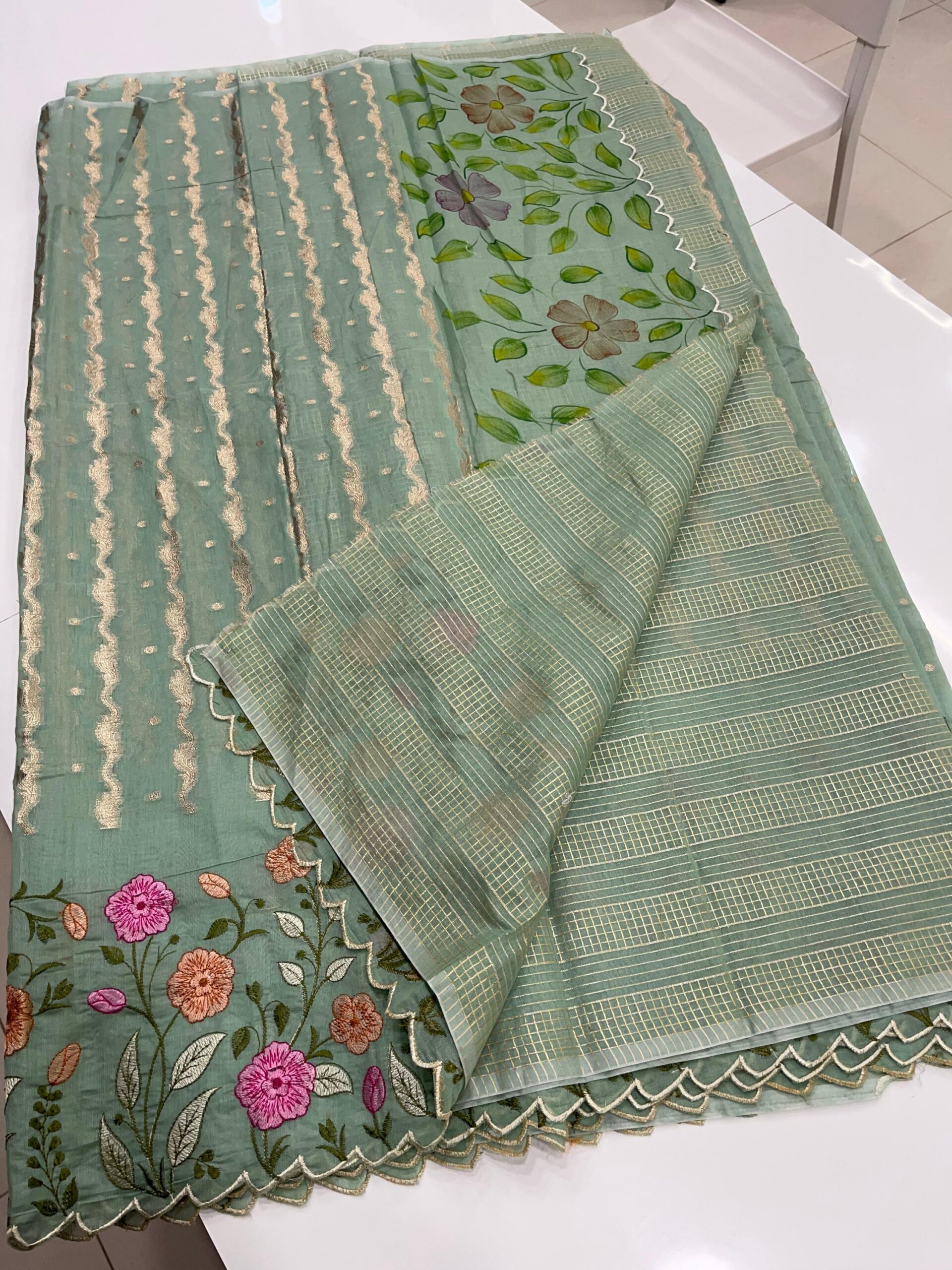 • Beautiful hand-painted designer pallu