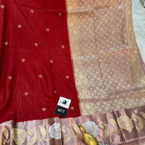Pure handloom banarsi raw mango sarees with contrast pallu border and blouse