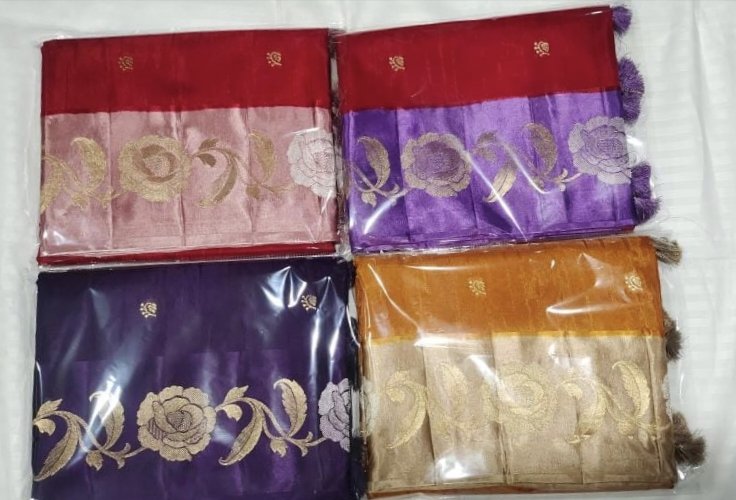 | color | dark violet with violet, mustard yellow shade, shade of maroon with baby pink, red with violet |