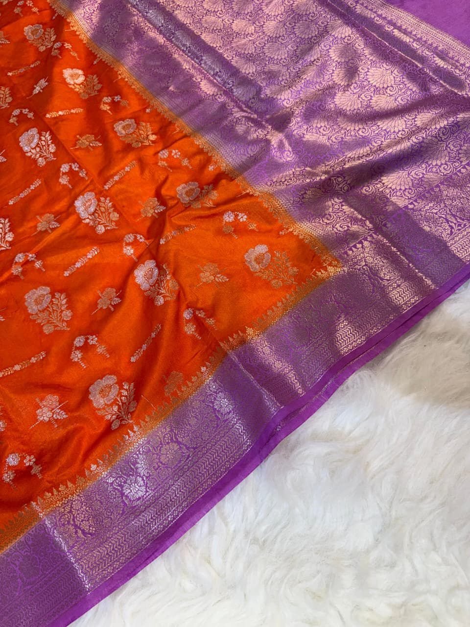 Step into timeless elegance with this Soft Banarasi Katan Silk Sarees, crafted to give you a rich and graceful look for every special occasion.