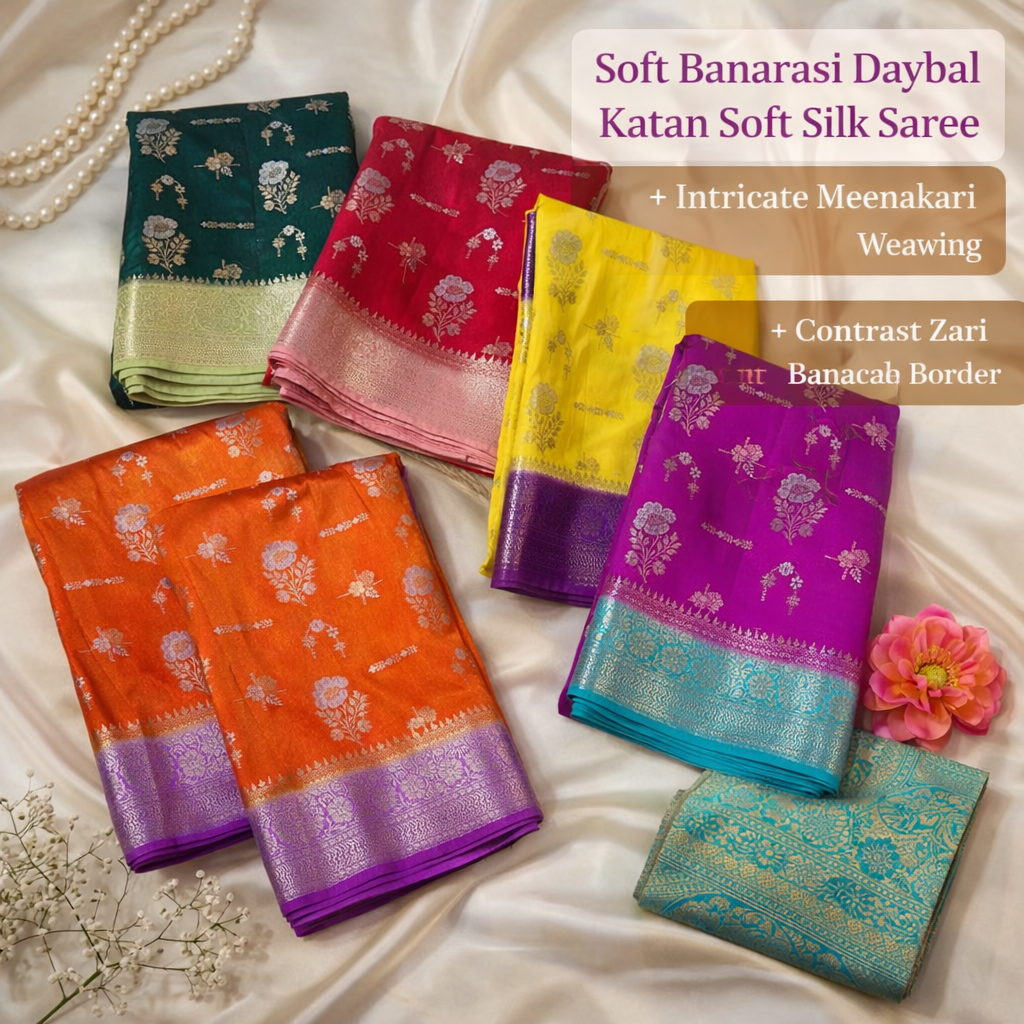Made from premium Soft Banarasi Katan Silk Sarees , it offers a smooth texture, lightweight feel, and comfortable drape throughout the day. The vibrant color combinations enhance its beauty, making it a must-have in your ethnic collection.